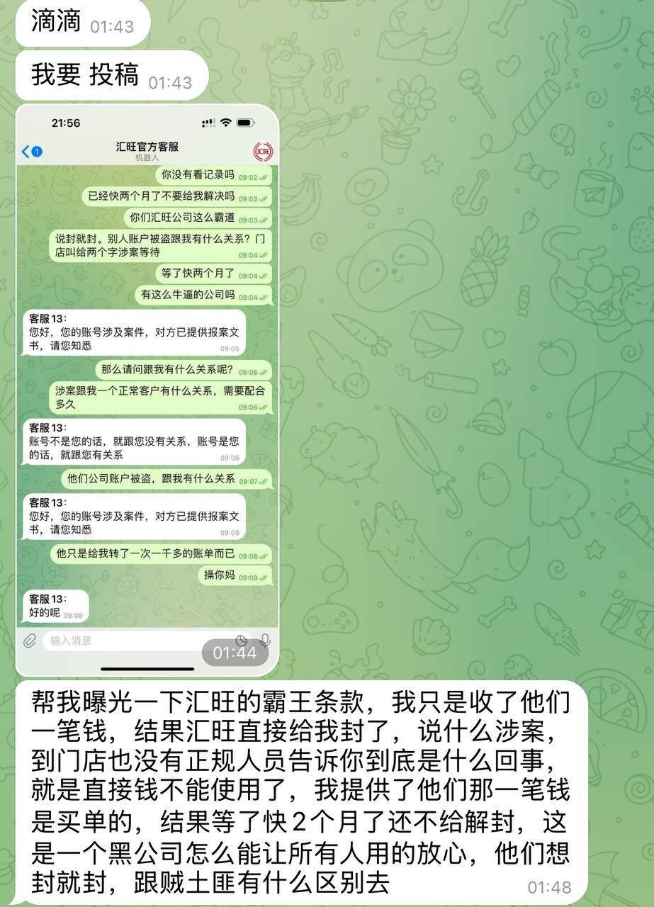 该网友的公开投稿为行业敲响警钟:任何金融服务机构若想长久发展,透明、公正的处理机制不可或缺。希望汇旺能尽快回应用户关切,完善申诉流程,确保合法用户的正当权益不受侵害。
