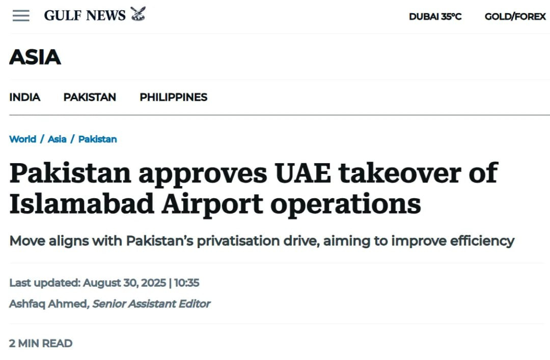 巴基斯坦承认“管不动”伊斯兰堡国际机场,交给阿联酋全面托管